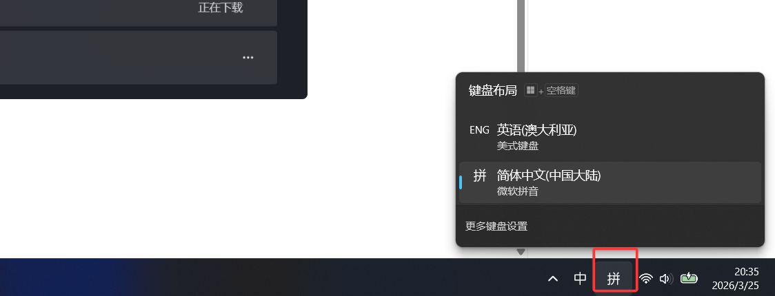 win+i然后点时间和语言,然后点语言和区域,下载一个英语输入法。